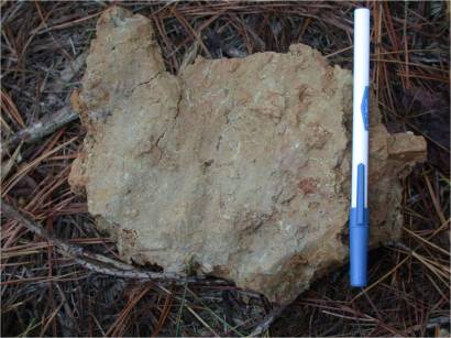 Structureless – massive, rock controlled fabric (a term used by the NCSU soil science folks, but not commonly used by others) occurs in saprolite (rotten, weathered rock) where the soil does have structure. However, that structure is not due to soil forming processes, but is due to the inherited structure of the parent material (what was once a rock).